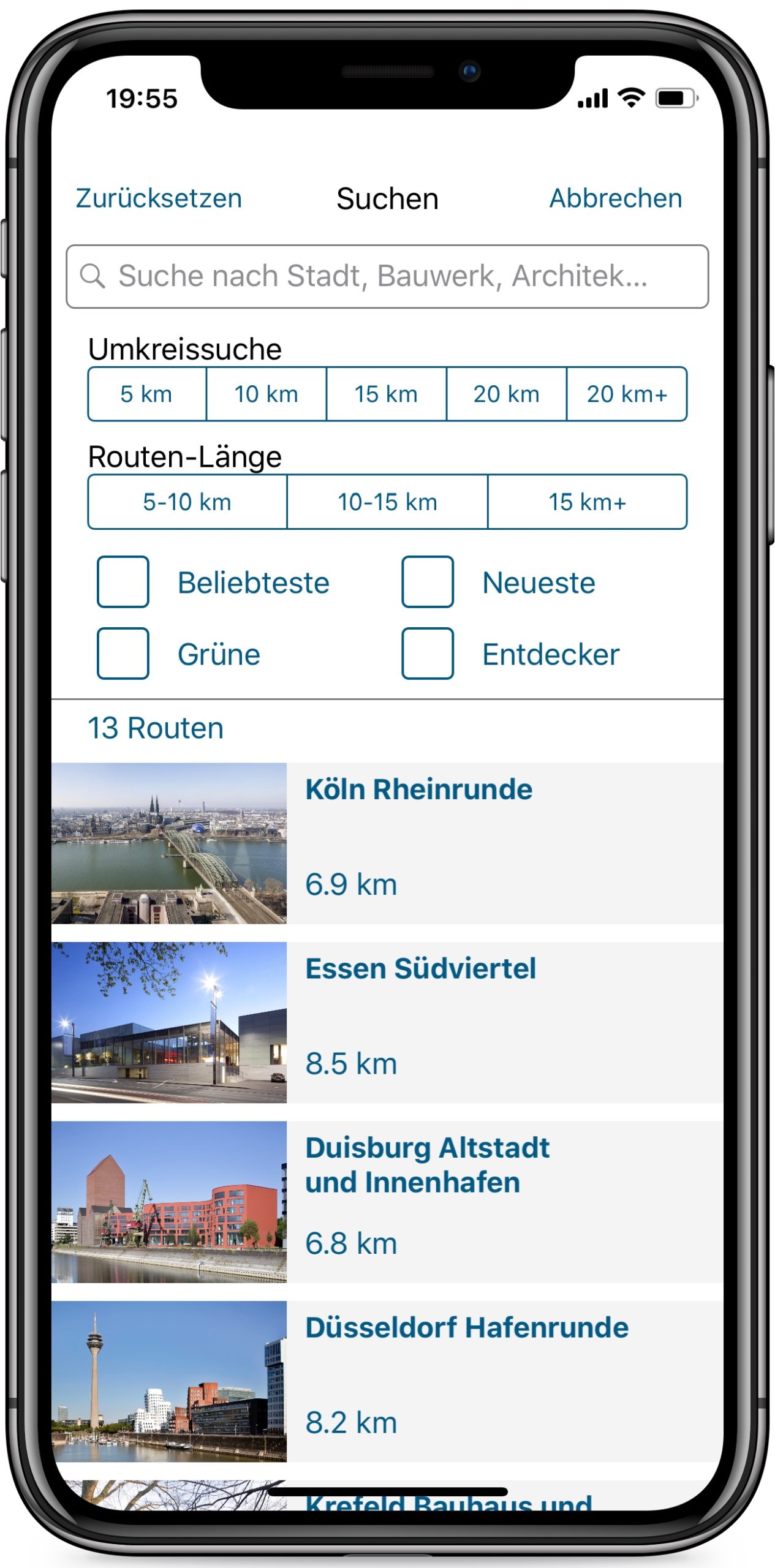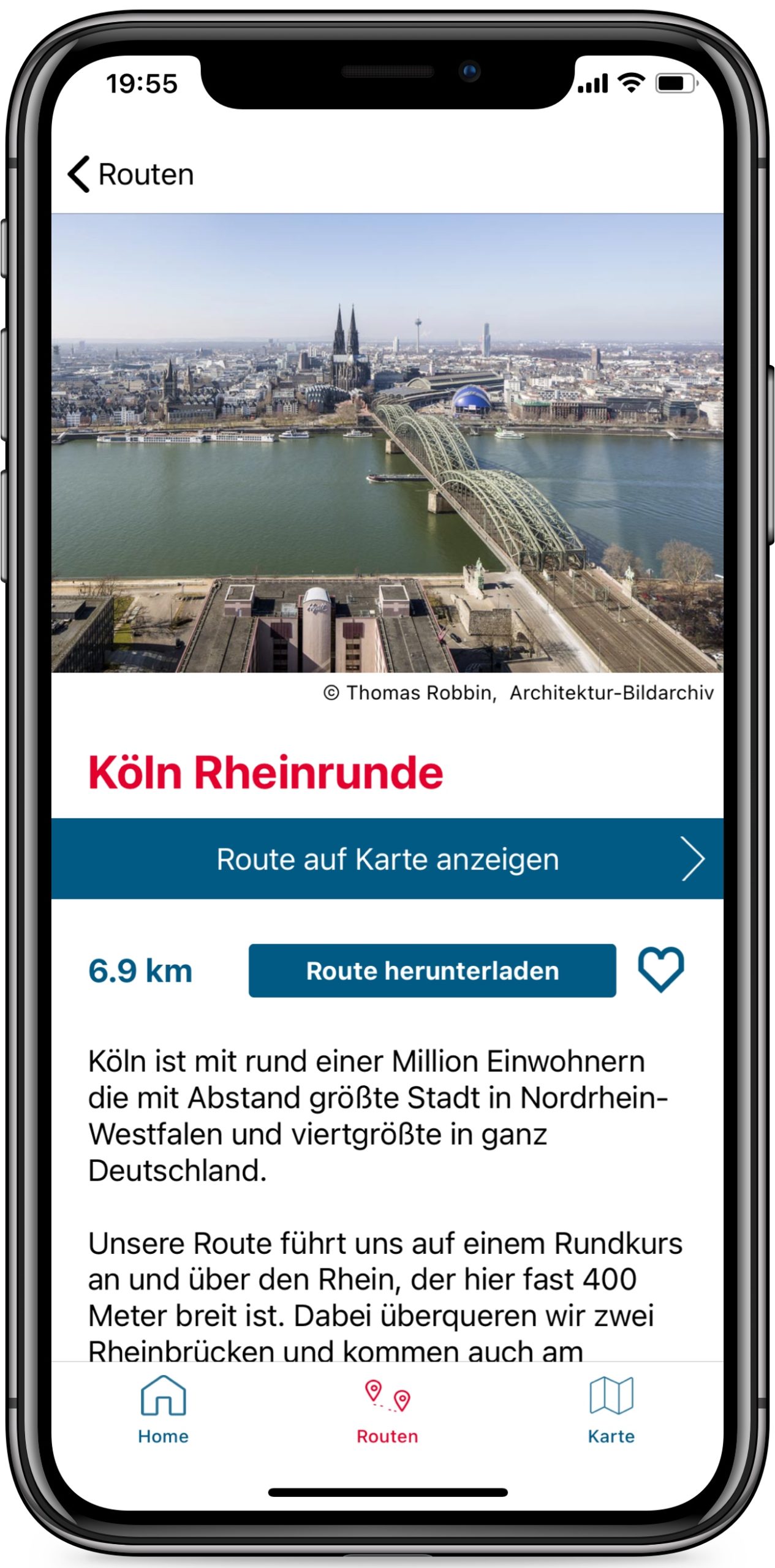 Hierfür wurde eine iOS und Android App und das ein Content-Managment-System entwickelt. Das CMS wurde vom Kunden redaktionell betreut. Mehr als 100 markante Objekte und individuelle Routen in verschiedenen Städten in NRW werden über das selbstentwickelte CMS angelegt.